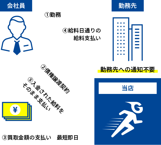 給与債権の買取は、お客様と当店のやり取りのみで完結することができます。